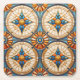 Bring a touch of global elegance to your space with this stunning geometric pattern in shades of teal blue, golden orange and white, inspired by traditional Moroccan and Mediterranean tiles. The intricate paper coaster design showcases symmetrical shapes and ornate details with an Egyptian flare, evoking the rich history and artistic craftsmanship of these regions. Whether used in home decor, party supplies, or personalized gifts, this pattern adds a sophisticated, worldly charm. The design is part of an exclusive collection, perfect for anyone looking to infuse their home or events with timeless beauty. Search ID1077 to see other products in this unique design set. Note: design adapted from generative content.