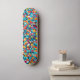 Turn heads with this Geometric Mosaic Pattern Skateboard, a bold and colorful design that adds a modern twist to your skating style. The deck features a lively arrangement of angular shapes in vibrant hues of red, yellow, blue, teal, and black, forming a striking, mosaic-like pattern that catches the eye from every angle. The repetitive yet playful geometry gives the board a dynamic, contemporary look, making it perfect for skaters who want to ride in style.