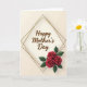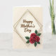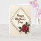 This greeting card features a soft cream background that sets a gentle, affectionate tone, like a quiet moment shared between close friends ❤️. Centered on the front is a short message in flowing lettering, written in warm brown and easy to spot at first glance. The text sits inside a layered diamond-shaped frame made from thin golden-brown lines that cross neatly at the corners. That crisp geometric frame adds structure while still leaving the design feeling tender and romantic. Down in the lower right, three deep red blossoms open toward one another, their curled centers and velvety petals suggesting a bouquet offered with care 🌼. Dark green leaves tuck around the flowers, adding contrast and a natural balance against the pale background. The lighting looks soft and even, giving the frame and florals a slight sense of depth. The diamond outline remains centered while the red flower cluster rests at the bottom-right corner against the creamy backdrop.