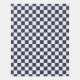 Bold geometric pattern of navy blue and cream squares form a checkered pattern.
