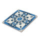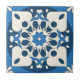 A modern tile featuring a geometric floral design in navy and blue colors with ivory. Beautiful for kitchen or bathroom!