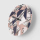 Geometric Navy Blue Peach Marble and Rose Gold Round Clock