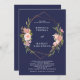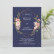 geometric navy wedding invitation pink florals