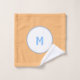 Large geometric circles with sky blue monogrammed initial inside white circles. Pretty soft orange and slate blue grey backgrounds. Fun modern trendy bath decor. Original designs by TamiraZDesigns.