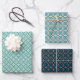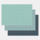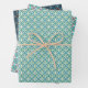 A geometric pattern of overlapping circles. Each sheet of wrapping paper is a slightly different color combination.