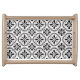 Stylish black and white abstract modern pattern with decorative shapes in a symmetrical design serving tray.