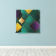 Geometric pattern Canvas Print 2024. This design showcases a dynamic geometric pattern with interlocking shapes and bold colors, creating a striking visual impact. The color palette features rich emerald greens, bright yellows, and deep purples, evoking a sense of energy and creativity. Layered textures enhance the overall complexity, while subtle metallic details add a touch of sophistication. This design transforms any space into an inspiring environment that sparks imagination and excitement.
