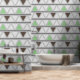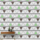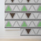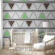 This wallpaper design features a modern and geometric pattern of triangles. The triangles are arranged in horizontal rows, alternating between shades of green, brown, and light gray, creating a visually pleasing and balanced look. The background is a soft, light gray, which complements the muted tones of the triangles. The repeating geometric pattern brings a sense of order and sophistication to the space, making it an excellent choice for a contemporary and stylish room. This wallpaper is perfect for bedrooms, living rooms, or any space that could benefit from a touch of modern elegance.