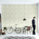 This watercolor wallpaper features a geometric pattern in pastel green and cream. Great for your bedroom, living room, hallway or office. Matching decor available.