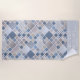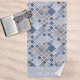 A modern design beach towel featuring a geometric pattern in the colors of the Atlantic Ocean with a text background area (optional) and custom text (also optional). Beautiful for any beach lover or a hotel, B&B or guesthouse.