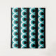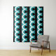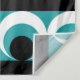 Geometric pattern illustration with stripes, circles and round shapes in turquoise, black and white colors