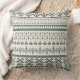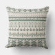 This pillow showcases an intricate geometric pattern on a cream-colored background, featuring dark green designs. The symmetrical arrangement of diamonds, triangles, and lines creates a visually striking and structured aesthetic. The repeating horizontal rows add depth and character to the pillow, making it an excellent decorative piece for a modern or bohemian-styled space.