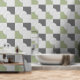 Add a touch of modern playfulness to your space with our geometric pattern wallpaper, showcasing a blend of circles, squares, and triangles in muted green, gray, and white tones. This contemporary design brings a stylish and subtle flair to any room, ideal for those looking to create a unique and inviting atmosphere. Perfect for living rooms, bedrooms, or playrooms, this wallpaper is easy to apply and built to last.