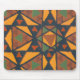 A mousepad decorated with a screenprint of a geometric design.