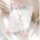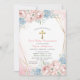 Geometric Pink Blue Roses First Holy Communion Invitation