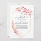 Pink watercolor floral online long distance virtual wedding invitation featuring sakura blossom with gold geometric frame customizable to your event specifics.