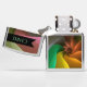 A colorful design featuring a geometric pinwheel pattern in fun colors of orange, yellow, green, lilac and pink. A black ribbon across the top contains space for a custom monogram that you can edit with your desired name or other text. If you need more space for your text, simply reduce the font size. You can also change the font type if you wish.