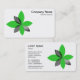 A business/profile card template with a geometric abstract plant or flower motif made up of leaf like shapes, four of which are solid color and three are semi-transparent and texture filled. Company name and business type on the front balanced with the motif on the left. Name an all other contact on the reverse with the motif on the right. Ready to be customized with your details, suitable for many types of business.