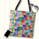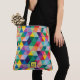 This monogram tote bag has all the rainbow colors to go with everything and never be out of fashion. Created in a geometric repeating pattern or triangle shapes. Your choice of medium or large and two styles (tote or messenger). Just personalize the monogram text in the easy Zazzle editor. Matching face mask and other color options available in this same style at Bee's Bags and Cases on Zazzle.