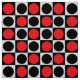 Checkered geometric Red and black circle dot surface pattern design fabric.