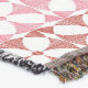 A quality printed throw has its advantages. This is a much finer weave throw than its loopier cousins, and though lighter, it is worth the investment for custom room accessorizing. The back is much prettier than the typical brown, and the fringe on the long sides very vivid, the selvage nicely done. Before photographing, I washed the throw in cold water, delicate, with a thicker woven throw the same size. On tumble dry low, this throw was dry in half the time as the other. This is a very practical quality if you use throws for furniture covers or to wrap up in frequently. The sleekness of the fabric makes it a great layer for accenting or protecting without the feeling of sitting on too much stuff. Perfect for napping or when you feel a light chill coming on. The color printing is beautiful and on this fabric, matched the design and color of my Photoshop image. This is an advantage for blending room fabrics and colors. The fringe on the short sides prints the colors from the design image and therefore varies from the side fringe. I streaked a white fractal line through the plaid pattern to give the illusion of weaving. This printed as crisp as an illusory thread, and put some white in the short side fringe, showing another advantage of print vs loomed- for artistic purposes, line lines, detail, and color integrity can be planned and preserved. My loomed throws have color limitations and more of a needlepoint texture. Print throws reproduce an exact image. The throw felt a little stiff straight out of the package, but this went away in the first delicate wash. Of course I searched the wash water for ink or bleeding and there was none.