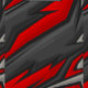 An abstract vector pattern design with a dynamic and aggressive aesthetic, featuring sharp, angular shapes in a bold color scheme of red, black, and gray. The design incorporates diagonal lines and geometric forms that create a sense of speed and movement, suitable for vehicle wraps or sports-themed graphics. The pattern includes subtle details like small, dashed lines within the red areas, adding texture and visual interest. The overall composition is modern and eye-catching, ideal for making a strong visual statement.