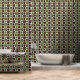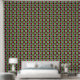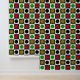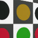 Checkered Geometric Retro Classic circle Dots red, green, yellow, black and white Black and White on grey and black squares Pattern Design Wallpaper