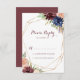 These geometric rustic gold modern calligraphy RSVP cards are perfect for an elegant wedding. The design features hand-drawn watercolor purple, navy, blush, burgundy, navy flowers, green and gold leaves adorning an elegant geometric frame.
