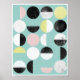 Geometric scandinavian print in turquoise featuring half circles in black, white pink and yellow.