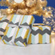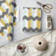 Moden geometric pattern with mint green, mustard yellow, white and gray stripes.