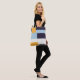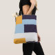 Trendy color blocking tote bag with yellow, blue, white and navy blue.