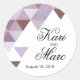 This pretty, round sticker features a bold, geometric diamond/triangle pattern in shades of periwinkle blue, lavender and aubergine. Many matching products available. TO SEE THE ENTIRE COLLECTION, VISIT: glamprettyweddings.com. Available in 8 fabulous colors: fuschia, coral, lilac, mint, teal, pink, periwinkle and yellow. Click the CUSTOMIZE IT button to personalize with your own text. For questions or custom requests, email: cheryl@glamprettyweddings.com/contact. "Geometric Triangles" original design by Cheryl Daniels © 2014.