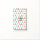This trendy geometric triangles pattern consists of colors like mint green, white, coral pink and aqua blue.