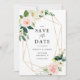Geometric Watercolor Spring Blooms Save the Date Card | Announcement your wedding date to family and friends with this floral save the date card. It features watercolor illustrations of white, peach and pink roses and peonies, foliage accents and faux foil geometric frame. This elegant save the date is perfect for garden weddings and spring weddings. Matching items are available.