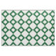 Stylish geometric fabric features a bold, graphic pattern of interlocking green and white diamond shapes. The green diamonds each contain a small white diamond making white the dominant color of the material.