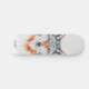 White skateboard with a geometric wolf portrait illustration with a customizable text.