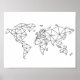 Abstract geometric world map, modern minimalist art print, design for wall art, t-shirts, shirts, bags, mugs, gift for traveler