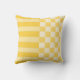 Geometric Yellow Stripes and Checkers Throw Pillow