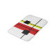 This rug is just as pictured! Vibrant Red and very soft material, nice to step in out of the tub! Matches my set of accessories and shower curtain! A must have to add some whimsy to your bathroom! Very nice, vibrant and clear print! Beautiful!