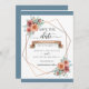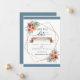 Elegant way to let your guests reserve your date! Gorgeous geometrical design with exquisite hand painted watercolor floral bouquets with flowers and foliage in blush, dusty rose, ivory, peach, cloudy slate blue, gray and sage tones. Delicate ribbons surrounding your date. Use of modern hand written calligraphy details. Back and stripes on front in elegant slate/cloudy dusty blue top and bottom stripes. Stripes on front may be deleted if desired. Coordinating invitation suite available. Part of our "Ethereal in Dusty Blue" wedding and events collection.