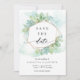 Elegant and Unique geometrical Wedding (or other event) Save the Date with delicate turquoise, dusty blue and soft green watercolor wash on the background and exquisite greenery encasing geometrical golden frame. Modern hand written calligraphy details. Back in delicate watercolor wash. Part of our "Airy Blue and Green Watercolor" collection with a variety of coordinating products available..