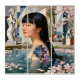 “Geometry of Serenity” – A Digital Portrait. Amid a dreamlike tranquil pool scattered with cherry blossoms, a woman emerges as both muse and mathematician - her shoulder bearing a cosmic diagram that bridges art and science. The cubist statues around her echo the geometric harmony of thought and form, blending human grace with abstract logic. A study in balance, this piece celebrates the quiet beauty of intellect and emotion united.