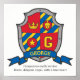 Knights style shield monogram G art name poster perfect for a boys bedroom or playroom in shades of red, yellow, blue and grey. Personalize with your child's own name and name meaning for a personalized touch to your child's bedroom or nursery, this example is for the name George Prosperous earth worker Brave, diligent, regal, with a true-heart. Poster print ideal for a gift to a new baby boy, for a christening, baby naming or baby shower gift. Unique sheild drawing, graphic art and design by Sarah Trett for www.mylittleeden.com