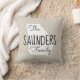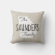 Modern farmhouse throw pillow personalized with your family name inside your state map. Faux burlap canvas texture background (please note pillow covers are not made of burlap material). Click the Customize It button to add your own text and select from all of our pillow styles to create your own unique one of a kind design!