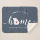 Show some home state pride with this cute rustic blue throw blanket featuring "home" in white calligraphy script lettering with a silhouette map of the state of Georgia standing in for the letter "O." A red heart illustration inside the state map completes the design; you can change the position of the heart to your home city by opening the design tool and dragging the heart shape to your favorite spot. Personalize with your home city, family name and year established to create a perfect and memorable housewarming gift or addition to your new home.