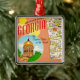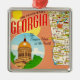 A colorful vintage postcard map of Georgia repurposed on an ornament.
