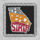 Colorful typography design features Georgia's nickname "The Peach State" in state shaped word art