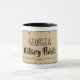 Advertise your notary public business with style and pride. Makes a thoughtful and practical gift for any notary professional who provides legal services to the public. This pen and parchment roll design is presented over a tan scroll papyrus background. Elegant feather quills and ink pots anchor each end of the document. Coffee mug is easily customized by changing "Georgia" to a name, city, phone number, or any other text of your choice.