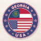 Badge of Georgia with flag of Georgia and flag of USA colors, rounded shape.