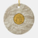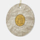 Lightweight, smooth, pure white ornament with nice sheen. Perfect size to be seen from across the room ... and to attract closer inspection! Price was great for ordering enough for the whole family! Clear, bold black design just as requested. Matches the order exactly. Just so nice!